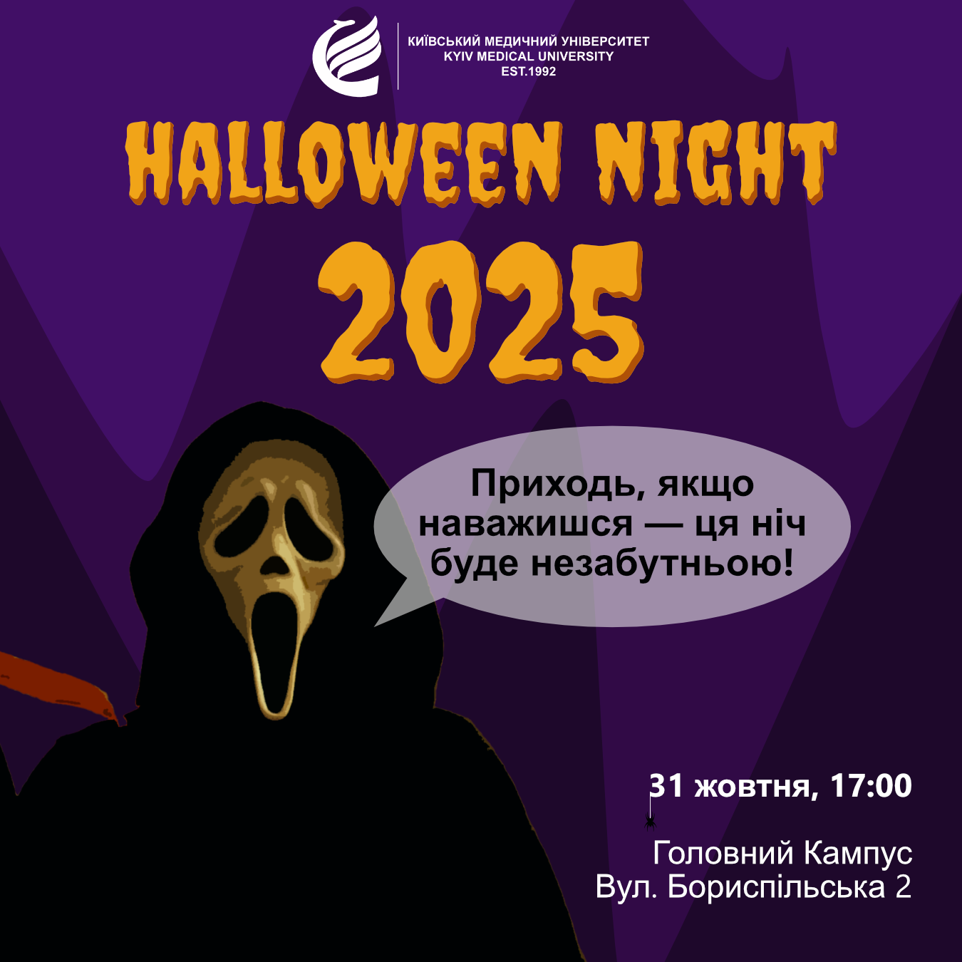 🎃 ХЕЛЛОВІН 2025 у Київському Медичному Університеті!Головний кампус на вул. Бориспільська, 2 перетвориться на справжнє місце магії, музики й драйву!