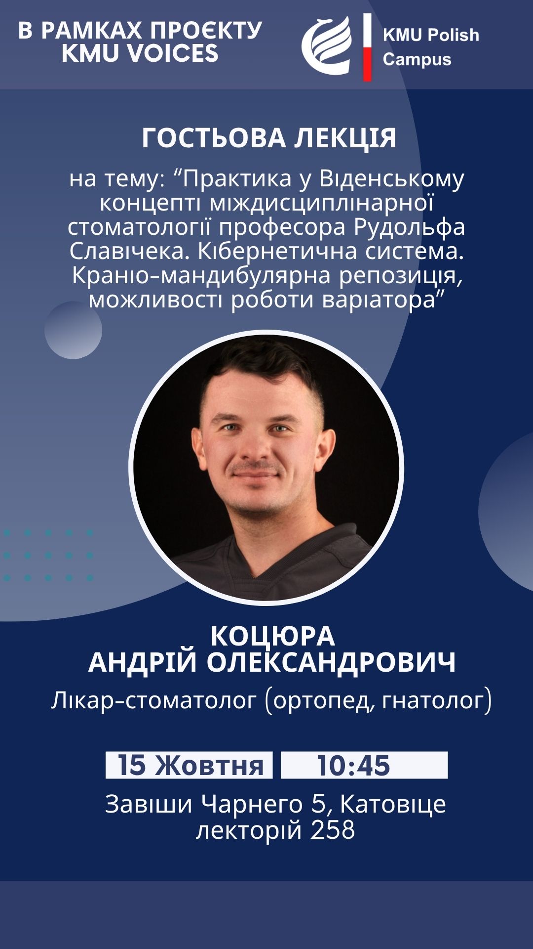 Київський медичний університет у межах проєкту гостьових лекцій KMU Voices запрошує на спеціалізовану лекцію з міждисциплінарної стоматології