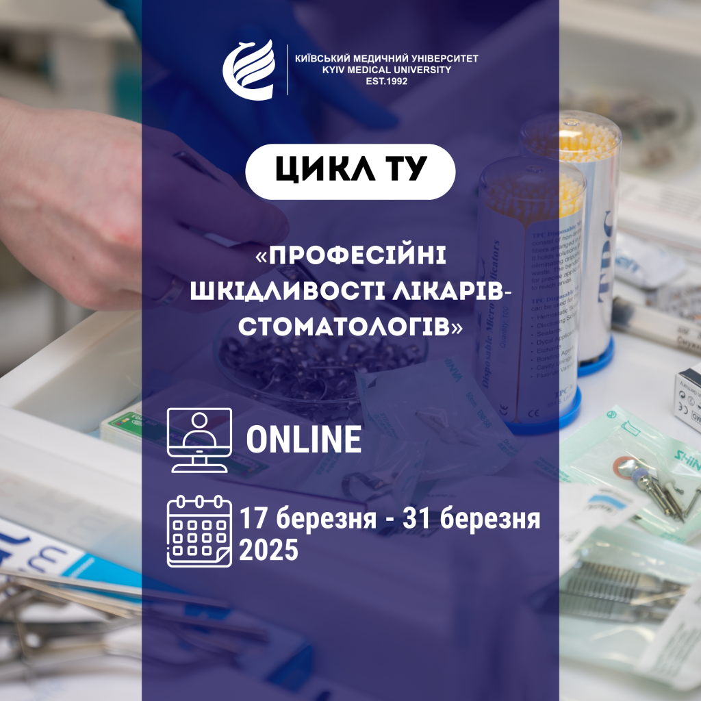 Кафедра дитячої терапевтичної стоматології ПВНЗ “Київський медичний університет” запрошує вас взяти участь у циклі тематичного удосконалення «Професійні шкідливості лікарів-стоматологів» та отримати 50 балів БПР