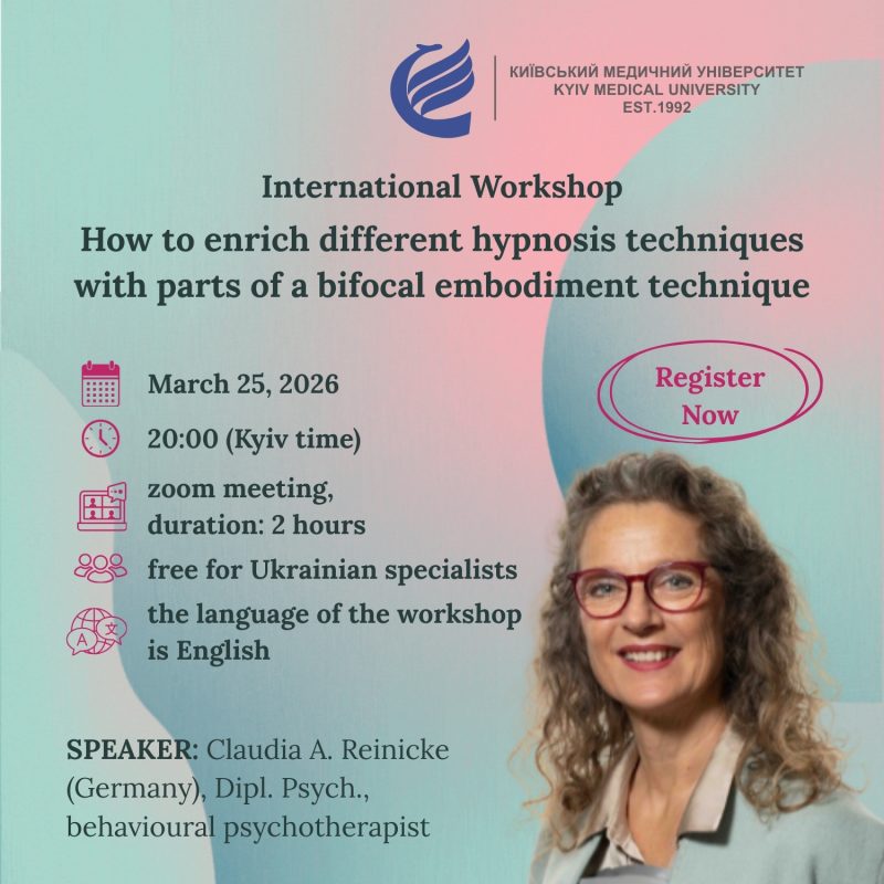 The workshop includes live demonstrations and hands-on practice, giving participants the opportunity to try the techniques themselves. Date & Time: March 25, 2026, 20:00 Kyiv time A Zoom link will be sent to the email address provided during registration 2–3 days before the workshop begins. Don’t miss this opportunity to enhance your therapeutic toolkit and learn cutting-edge techniques for working with clients!