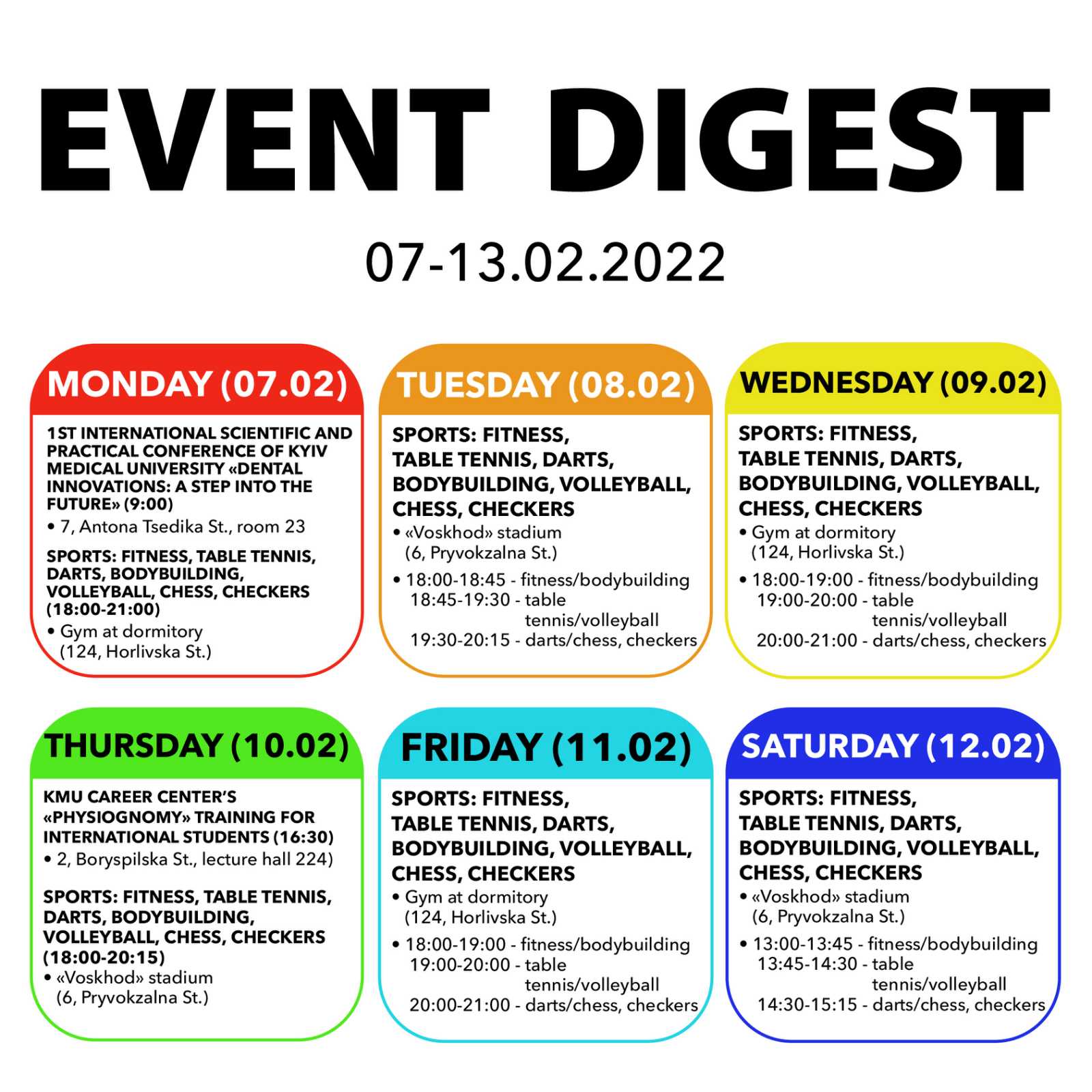Kyiv Medical University Event Digest (February 7-13)Dear students! Check out and partake in our events that will take place this week, from February 7th to February 13th.