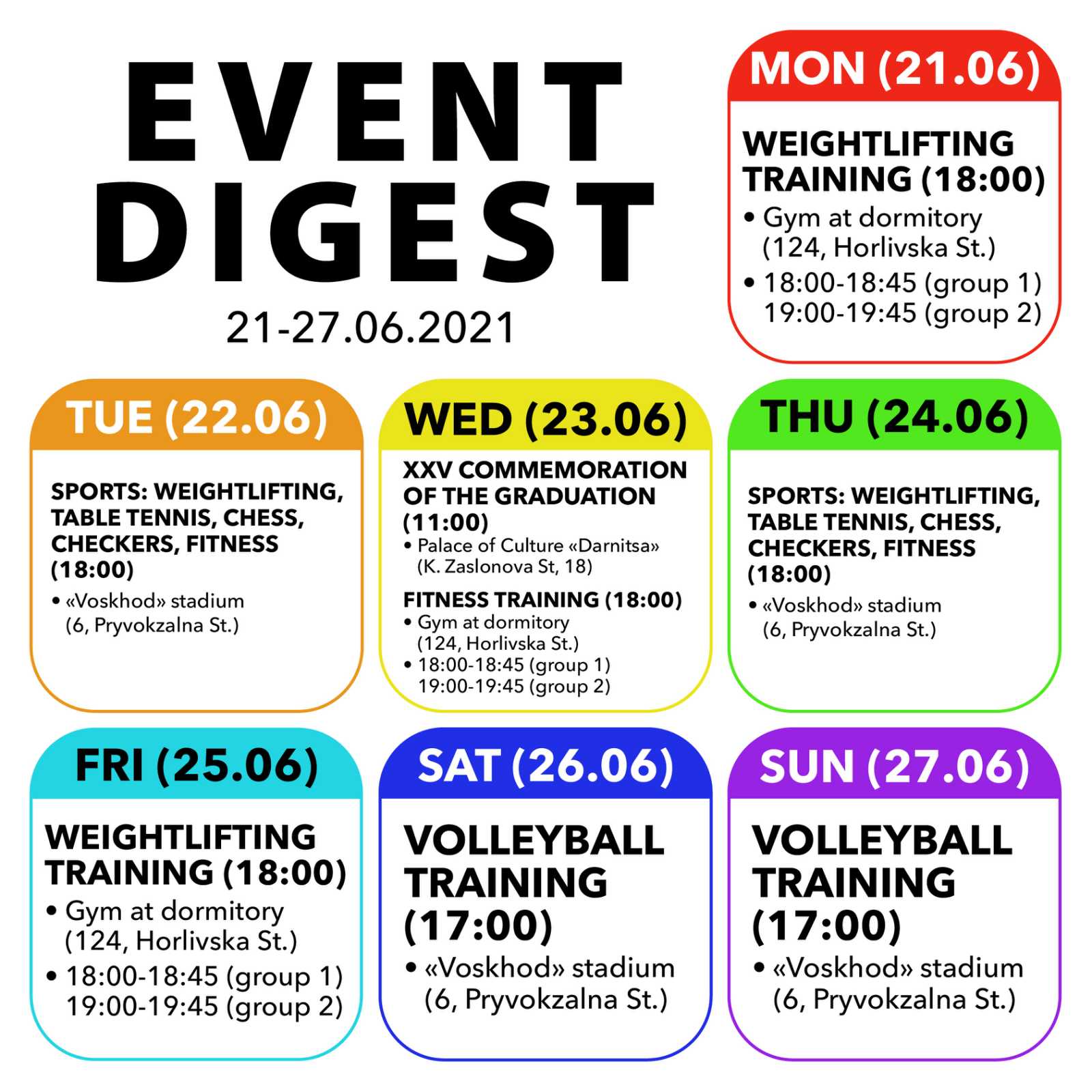 Kyiv Medical University Event Digest (June 21-27)Dear students! Check out and join our events that will take place this week, from June 21th to June 27th For more details contact our event coordinator, Oleg Melnyk, +38 (093) 115-80-82