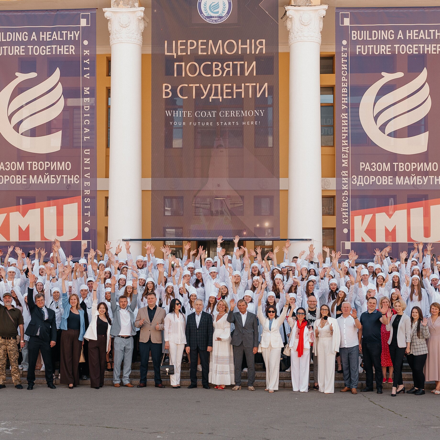 White Coat Ceremony 2025Dear students, esteemed lecturers, and staff! On September 4, 2025, the main campus of Kyiv Medical University in Kyiv hosted the solemn White Coat Ceremony. This year, nearly one thousand new students, interns, and PhD candidates have joined the community of Kyiv Medical University. This is a sign of great trust in the work carried out daily by the KMU team and a confirmation that our university is the best private university in Ukraine. It is our students and educators who make it so! We continuously create new directions at the university, all connected to healthcare, addressing modern challenges, and opening new opportunities for the future of medicine in Ukraine. The traditional ceremony was attended by:
