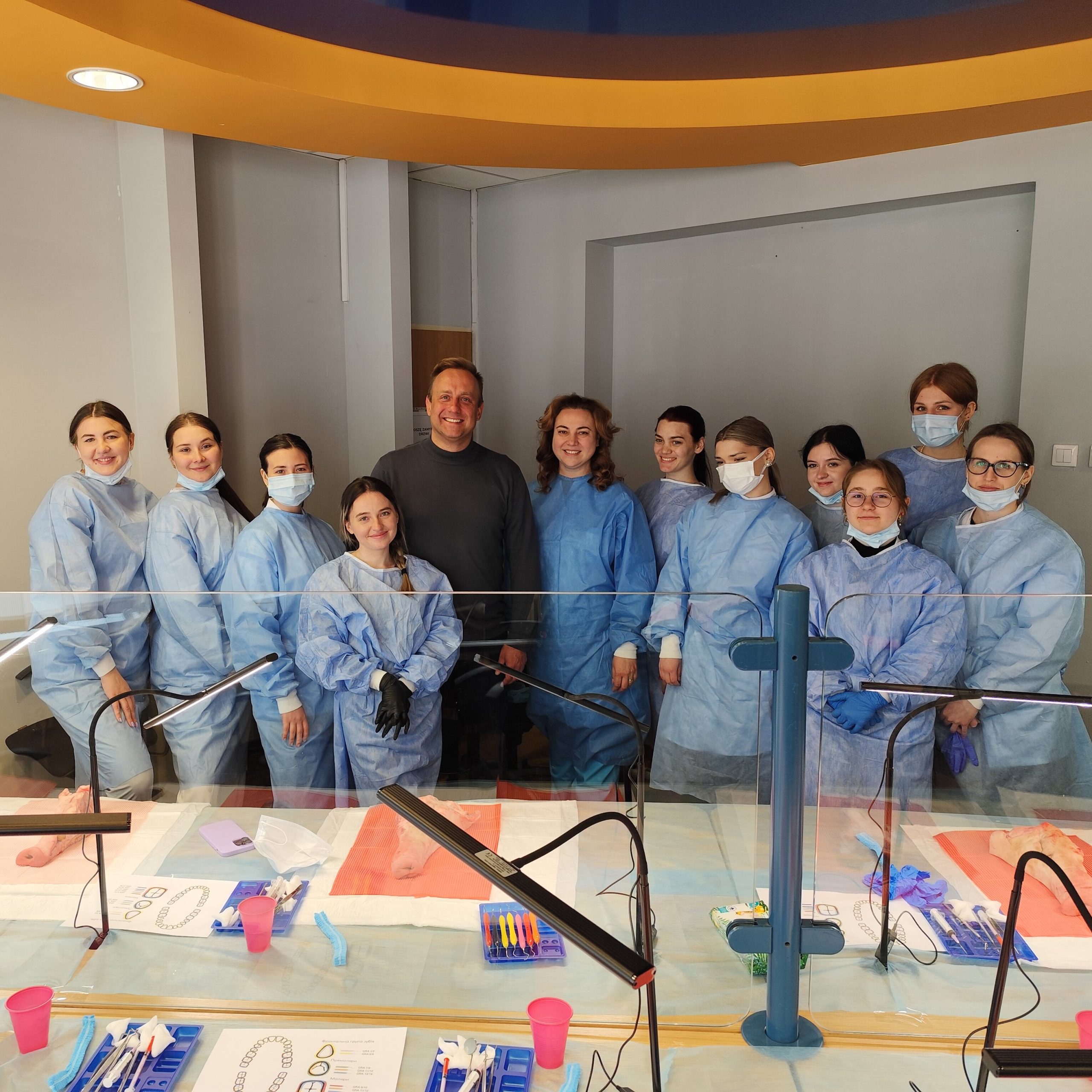 Кадавер-курс «Регенеративна стоматологія: міфи та реальність» 08.05.20258 травня відбувся унікальний кадавер-курс, присвячений регенеративній стоматології — одному з найперспективніших напрямів сучасної медицини. Студенти стоматологічного факультету Київського медичного університету отримали можливість не лише поглибити свої теоретичні знання, а й відпрацювати практичні навички на свинячих головах — у реалістичних умовах, наближених до клінічних. Тренінг був зосереджений на методах тканинної регенерації, розвінчанні поширених міфів та обговоренні реальних клінічних кейсів. Велика кількість практичних відпрацювань сприяла формуванню впевненості та професійної майстерності майбутніх стоматологів. Такі заходи не лише підвищують рівень підготовки, а й напряму впливають на якість та безпеку лікування пацієнтів. Щира подяка професору Оксані Вікторівні Копчак за організацію та проведення курсу, а також лікарям-стоматологам та асистентам кафедри — Світлані Правук і Валерії Карловій — за підтримку, супровід і професіоналізм. 12.05.2025