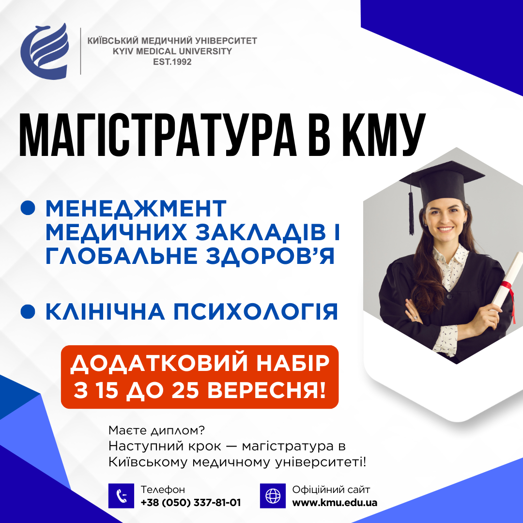 КМУ проводить додатковий набір за магістерськими напрямками: “Менеджмент медичних закладів та глобальне здоров’я” та “Клінічна психологія”Вітаємо!