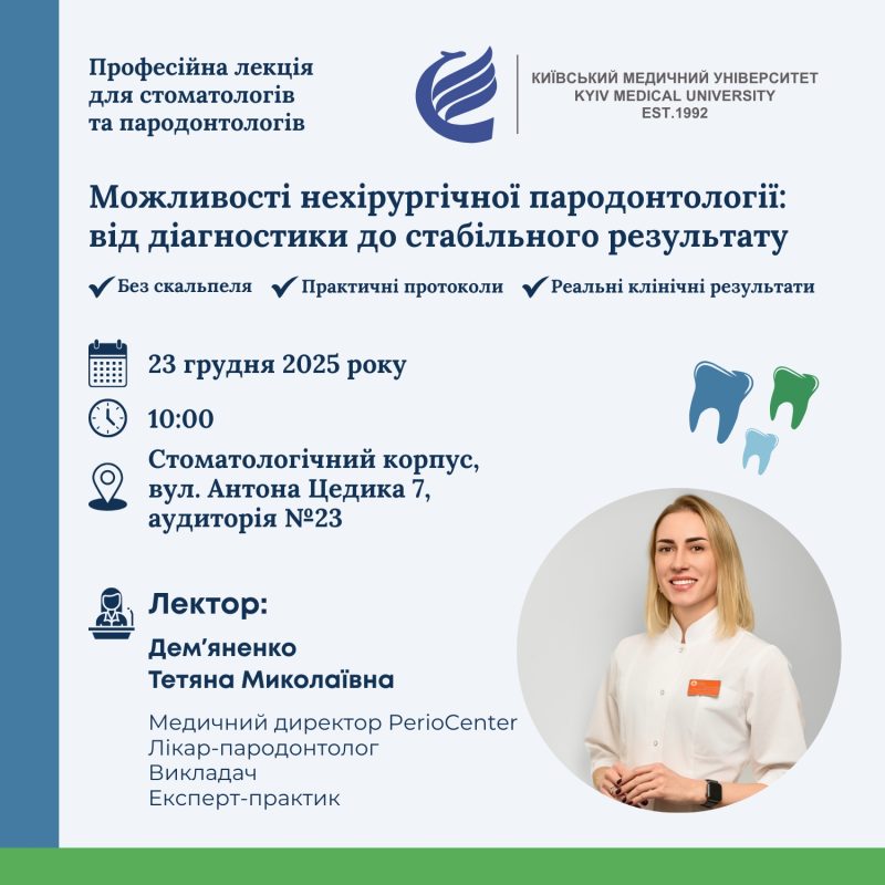 Дата: 23 грудня 2025 року Час: 10:00 Місце: Стоматологічний корпус, вул. Антона Цедика 7, ауд. 23 Зареєструватись можна за посиланням тут. Лекція обіцяє бути корисною та практичною – не пропустіть!
