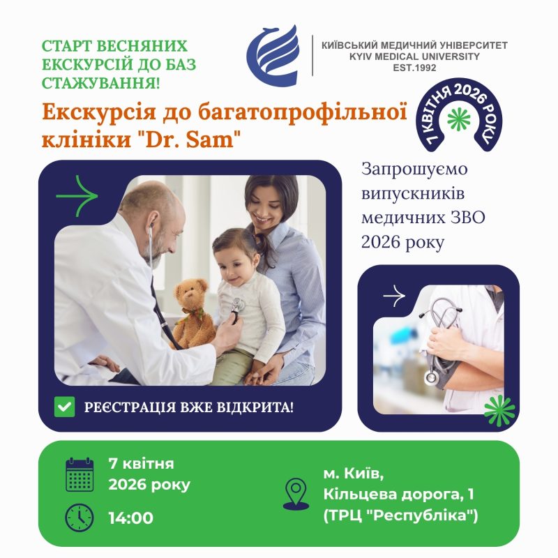 Нетворкінг та неформальне навчання Це шанс не просто подивитися — а зрозуміти, куди рухається сучасна медицина і яке місце в ній можете зайняти саме ви. Дата: 7 квітня 2026 року Час: 14:00 Адреса: м. Київ, Кільцева дорога, 1 (ТРЦ «Республіка») Як приєднатися? Кількість місць обмежена, тому рекомендуємо не відкладати реєстрацію. Заповніть форму за посиланням. 7 квітня — це день, який може змінити ваше бачення професії. Ознайомитися з атмосферою попередньої екскурсії можна за посиланням.