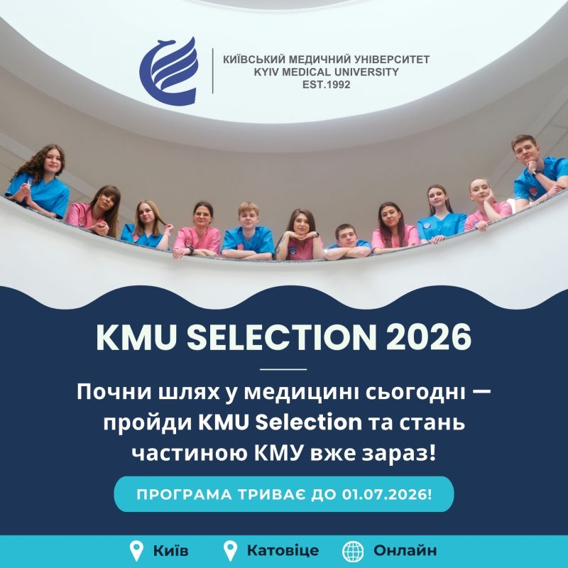 Програма раннього відбору абітурієнтів KMU Selection: старт набору 2026KMU Selection успішно стартувала у 2025 році: абітурієнти зробили крок до омріяної професії – стали студентами КМУ! Тепер ми продовжуємо цю традицію та розпочинаємо програму KMU Selection для вступників 2026 року. Київський Медичний Університет завжди прагнув відкривати можливості для тих, хто справді народжений для медицини, тому саме тут створено й уперше в Україні впроваджено ексклюзивну програму раннього відбору абітурієнтів — ініціативу, що дозволяє найкращим кандидатам проявити себе ще до офіційного зарахування, допомагає визначити майбутніх медичних професіоналів, підтримати їхній шлях у професію, а також гарантувати собі місце в університеті задовго до вступної кампанії, отримуючи додаткові можливості, знижки на навчання та інші переваги. Перші абітурієнти вже пройшли тестування, співбесіди та отримали запрошення продовжити свій шлях до медичної освіти. Вони залишили університет із відчуттям впевненості, адже вже зробили ключовий крок до зарахування в КМУ. KMU Selection – це можливість для талановитих і вмотивованих майбутніх медиків проявити себе задовго до вступної кампанії. Учасники програми отримують не лише цінний досвід, а й додаткові переваги, які допоможуть їм краще підготуватися до навчання в одному з провідних медичних університетів України та Польщі. Чому варто взяти участь?
