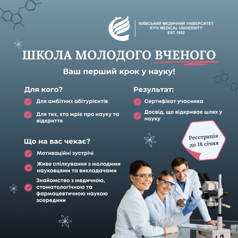 Долучайся до Школи молодого вченого — обери науку, обери майбутнє, обери Київський медичний університет!