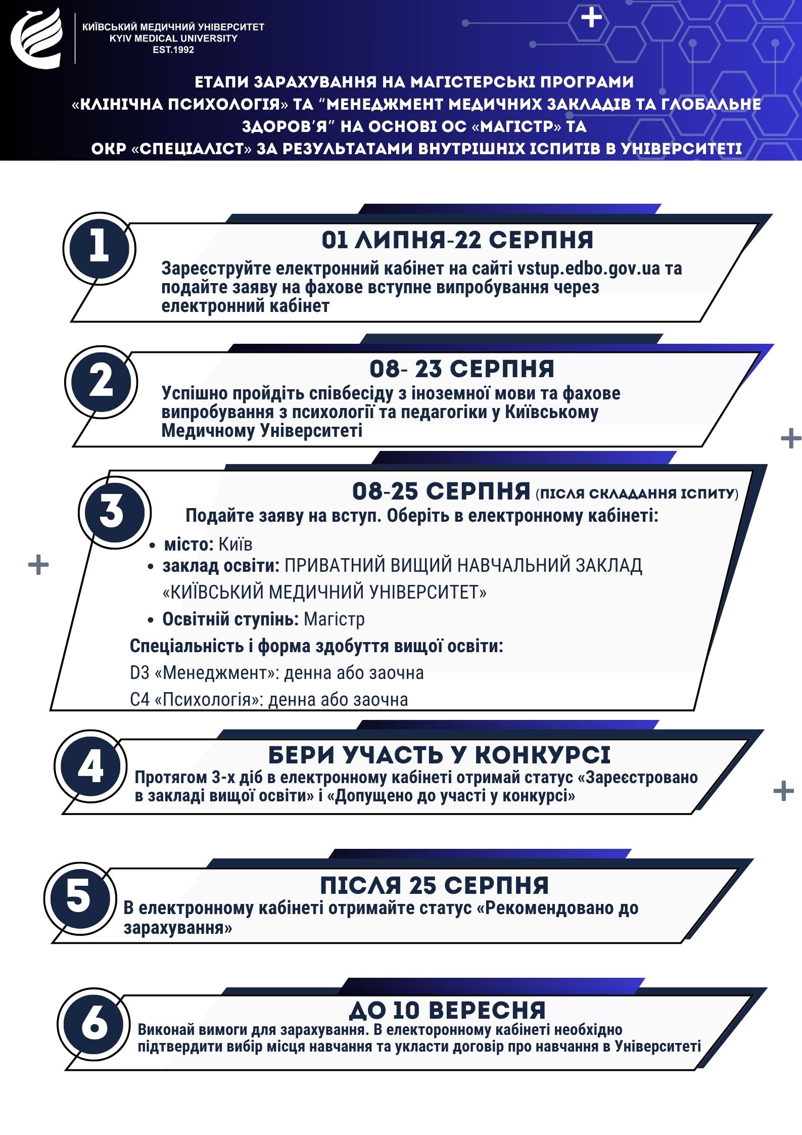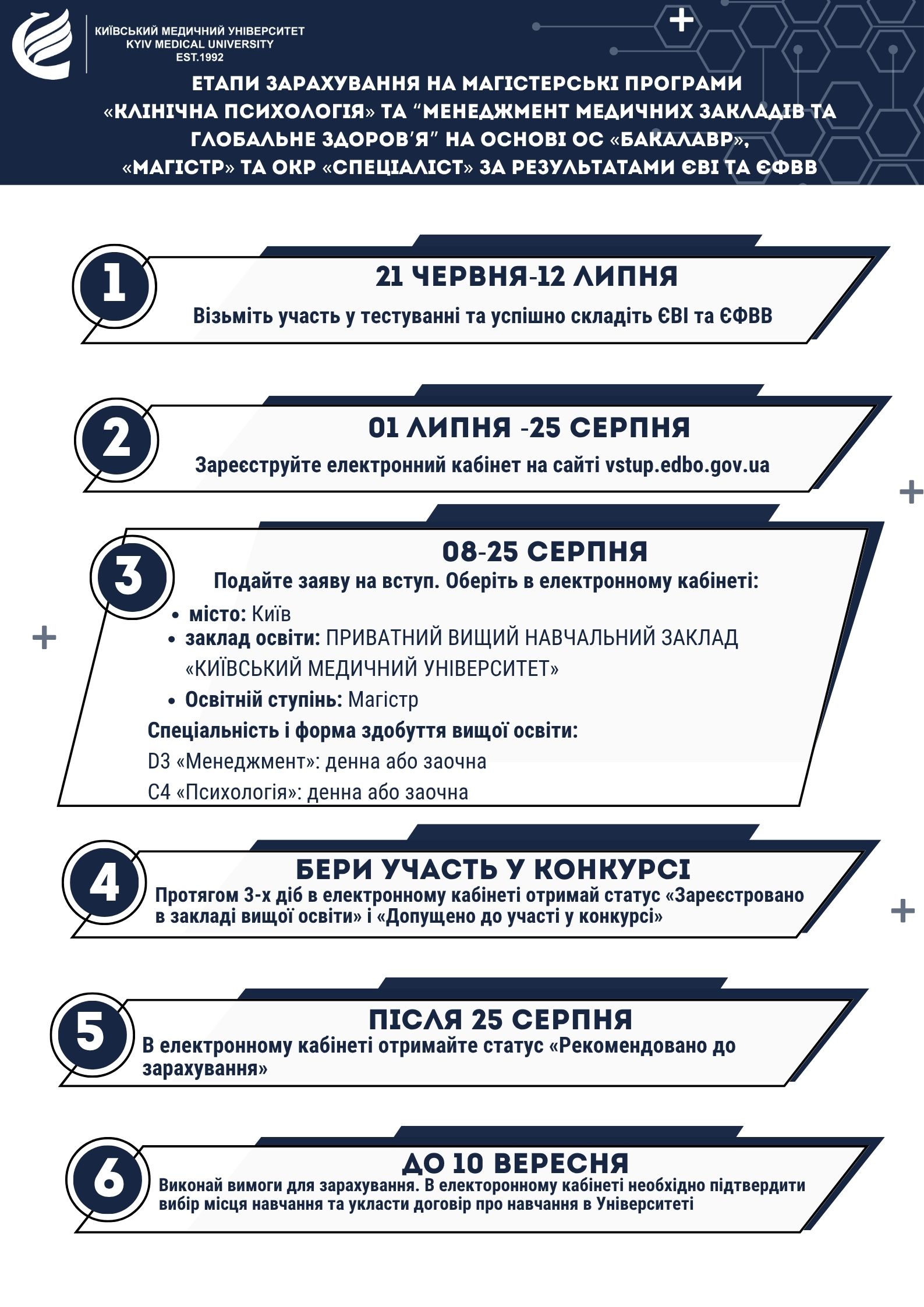 Строки прийому заяв та документів на освітні програми “Клінічна психологія” та “Менеджмент медичних закладів та глобальне здоров’я”