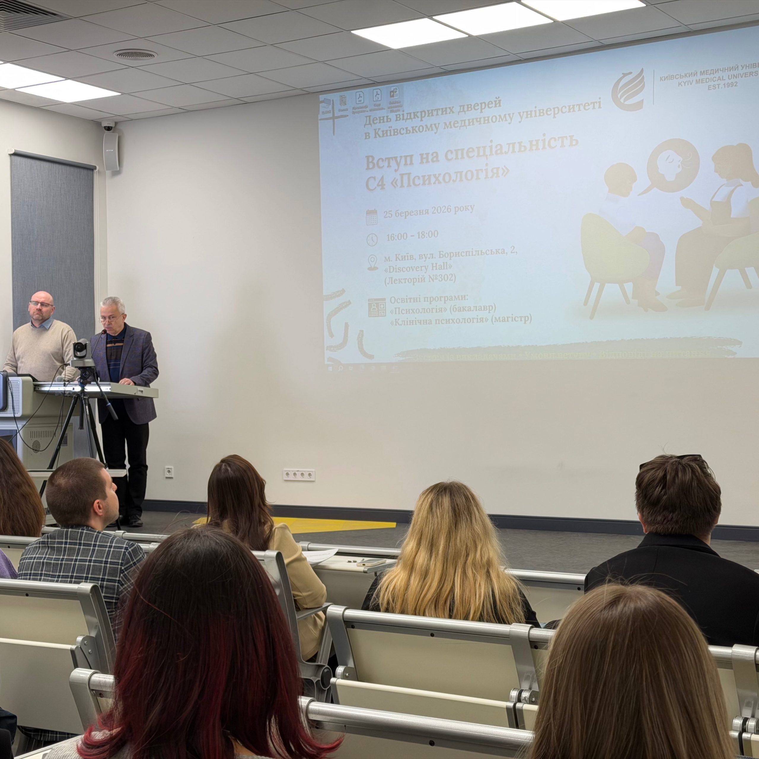 У Київському медичному університеті відбувся День відкритих дверей: вступ на спеціальність С4 «Психологія»25 березня 2026 року Київський медичний університет відчинив двері для тих, хто планує пов’язати своє життя з однією з найважливіших професій сучасності — психологією. Подія, що об’єднала абітурієнтів, практикуючих фахівців та науковців, стала справжнім прикладом адаптивності та професійної згуртованості. Урочиста частина заходу розпочалася в актовій залі університету. Зі вступним словом виступив ректор КМУ, доктор медичних наук, професор, академік Академії наук вищої освіти України, член президії Академії наук вищої освіти України, Івнєв Борис Борисович. У своєму зверненні він акцентував увагу на тому, що підготовка психологів у медичному закладі дає унікальну перевагу — розуміння зв’язку між ментальним та фізичним здоров’ям. Ректор підкреслив, що університет постійно інвестує в інноваційні методи навчання та розвиток міжнародного партнерства. Презентація освітніх можливостей: від бакалаврату до клінічної магістратури Професійний блок презентував завідувач кафедри психології, кандидат психологічних наук, доцент Єгор Кучеренко. Він детально зупинився на двох ключових векторах підготовки: