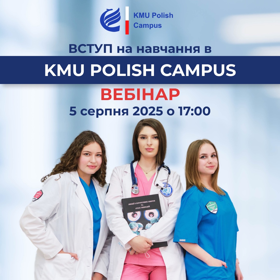 Вебінар для вступників, які вже обрали або ще розмірковують над навчанням у KMU Polish CampusЧерез великий інтерес і з міркувань безпеки багато студентів обирають саме KMU Polish Campus — кампус КИЇВСЬКОГО МЕДИЧНОГО УНІВЕРСИТЕТУ у Польщі.