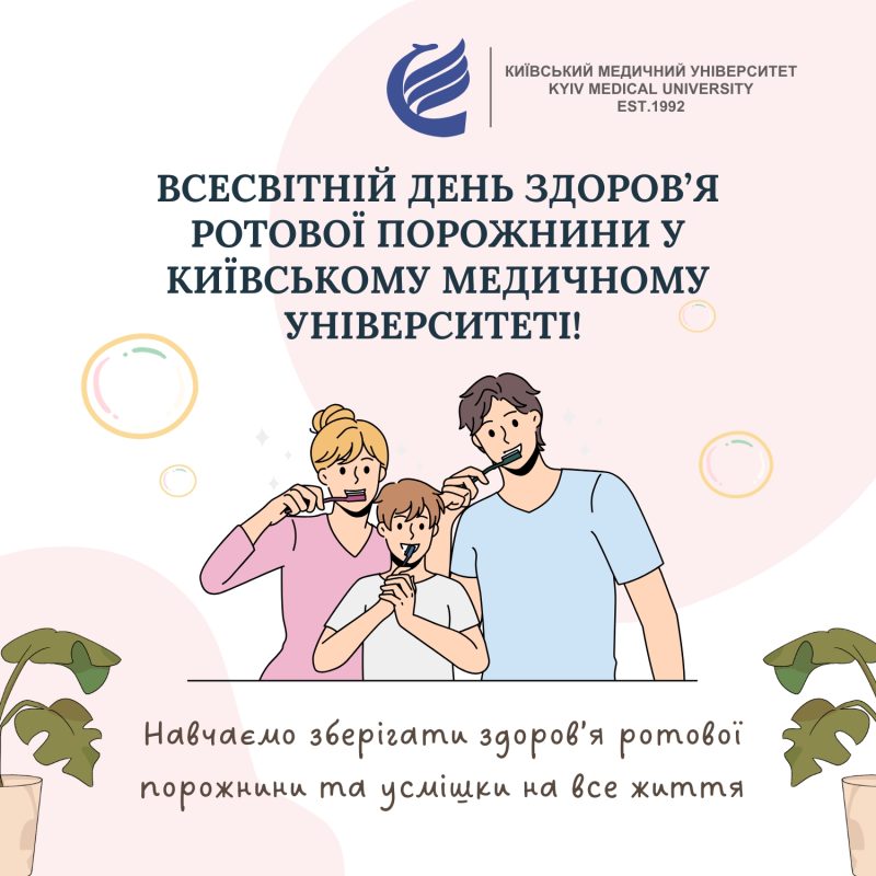 Всесвітній день здоров’я ротової порожнини у Київському медичному університетіСьогодні, 20 березня, відзначаємо Всесвітній день здоров’я ротової порожнини. Це чудова нагода нагадати про важливість щоденного догляду за зубами та яснами, профілактики стоматологічних захворювань і формування здорових звичок, які супроводжують нас усе життя. Здорова усмішка — це не лише естетика, а й важливий елемент загального здоров’я та впевненості у собі. У Київському медичному університеті ми поєднуємо класичну та сучасну медицину, навчання і практику, прагнучи до досконалості у всьому. Зараз у нашому університеті триває тиждень стоматології “DENTAL-FEST” , присвячений World Oral Health Day, де студенти та викладачі проводять освітні та практичні заходи, демонструючи, як важливо піклуватися про ротову порожнину. Ми пишаємося тим, що наш університет не лише готує кращих медичних фахівців України, а й активно трансформує систему охорони здоров’я на благо людей і громад. Цінності Київського медичного університету — досконалість, інноваційність, відданість та відповідальність — відображаються у кожному заході, у кожній посмішці, яку ми допомагаємо зберегти здоровою. Долучайтеся до нашого DENTAL-FEST і дізнайтеся, як прості звички сьогодні можуть стати запорукою здорових усмішок на все життя!