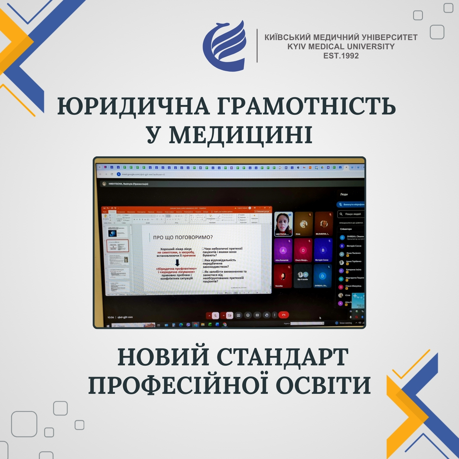 Окрему увагу було приділено питанням інформованої згоди пацієнта, правовим аспектам проведення хірургічних втручань, а також коректному веденню медичної документації як одному з ключових елементів правового захисту лікаря. Слухачі також поглибили знання щодо дотримання лікарської таємниці та меж розголошення медичної інформації.