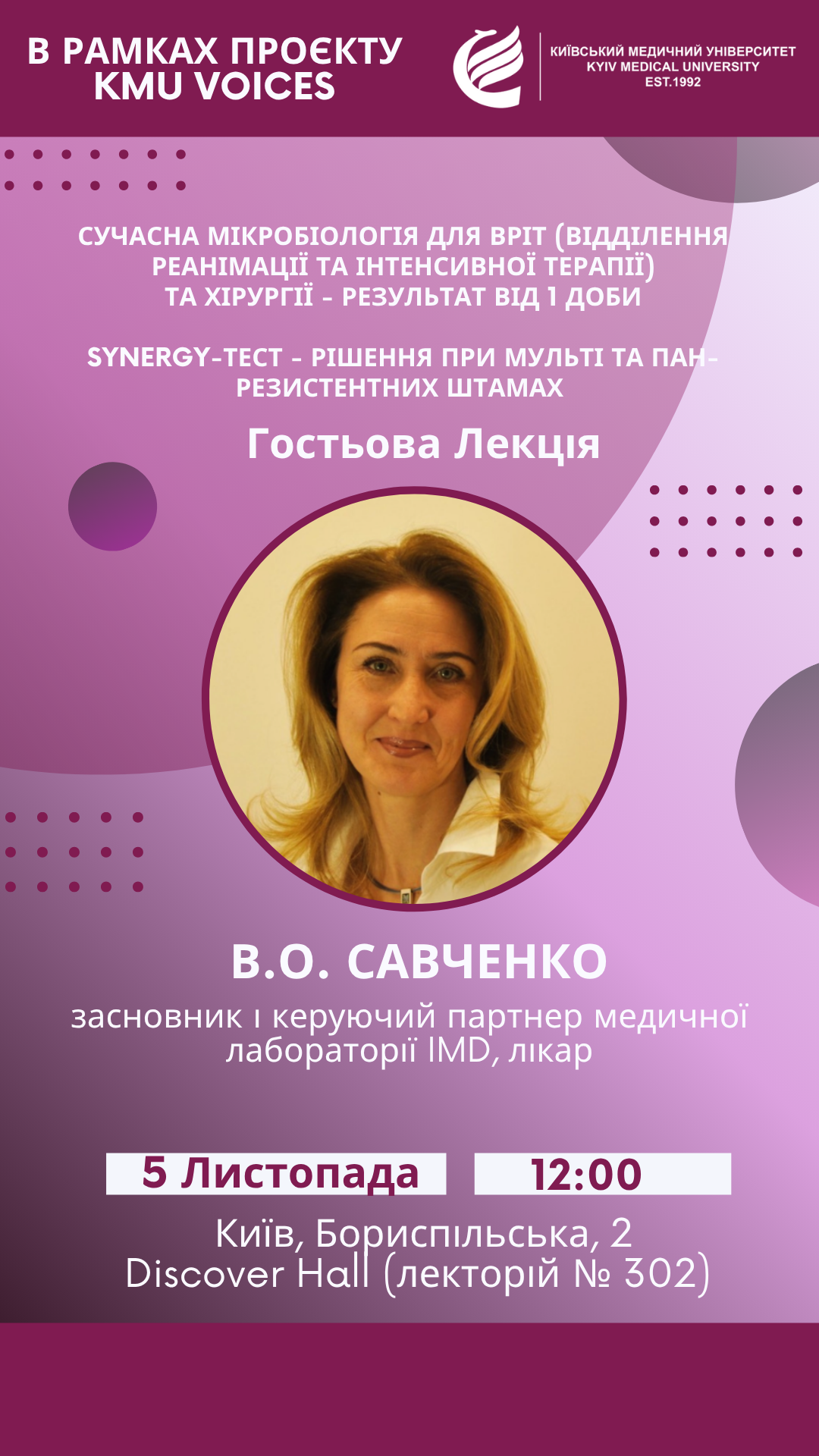 Запрошуємо на відкриту лекцію Вікторії Савченко – засновниці лабораторій IMDТема:
